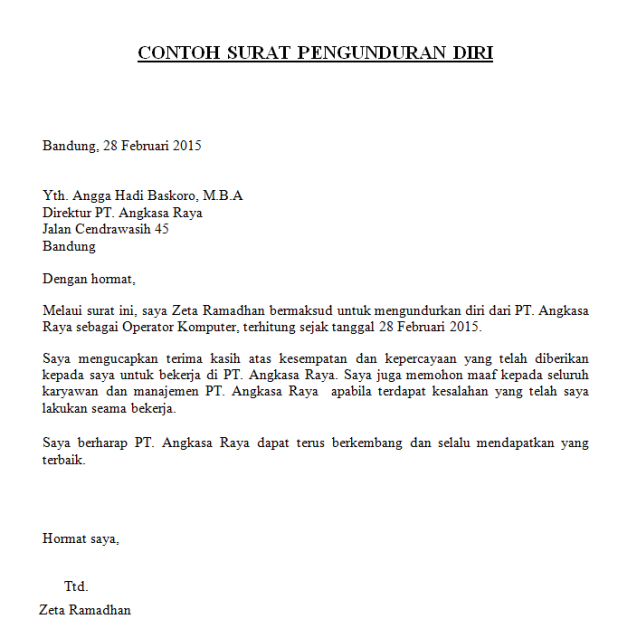 Contoh Surat Pengunduran Diri Dari Jabatan Ketua Rt Doc ... from lh3.googleusercontent.com Surat pengunduran diri dari ketua rt. We did not find results for: Maybe you would like to learn more about one of these? Check spelling or type a new query.